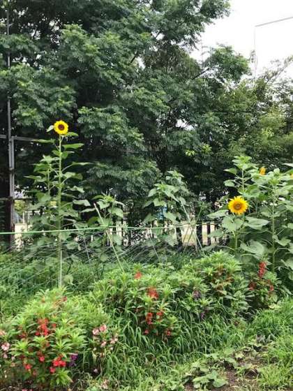 今朝の写真は,またもや「向日葵(ひまわり)」ですが,今朝,畑を見に行くと,ついに,3m級の向日葵が開花していました。その他の向日葵も次々開花しています!