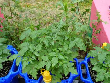 プチトマトが梅雨の雨をうけて,ぐんぐん育っています。