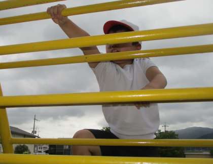 遊具の安全な使い方を学習しました。親指をしっかりとバーに巻き付けて掴みます。周囲の安全に気をつけながら使えるようになったらいいですね。