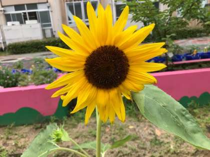 現在,ワンダフルワールドの畑や中庭,校門前に,約4種類の向日葵(ひまわり)が育てられています。