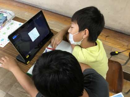 今日も昨日に引き続き,タブレットPCを使って調べ学習を行いました。紙で見ているとできない写真をズームしてみてみたい箇所を詳しく見たり,比べてみたりしながら資料を読み解いていました。