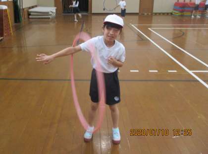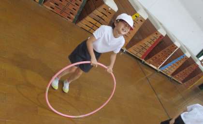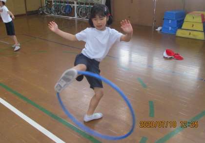 フープをくぐったり,跳んだり,腕で回したり・・・