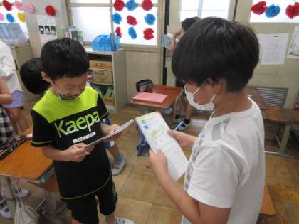 子どもたちは,How's the weather today?とお友達に尋ねたり,It's sunny.と答えたり楽しそうに活動していました。