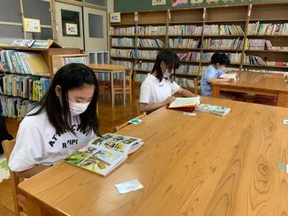 新しい生活様式のもとでは,図書室の使い方にも注意を払わないといけません。6年生は学校司書の田中先生から,図書室での注意事項などを教えてもらいました。これまでと違う図書室のスタイルに少し戸惑うかもしれませんが,子どもたちの「もっともっと学問を深めたい」という意欲を止めるわけにはいきません。これからもソーシャルディスタンスを守り,読書を楽しんでほしいと思います。