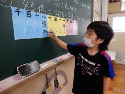 一億をこえる数を読みやすくするためには,四けたずつに区切りを書くと分かりやすいと考えていました。