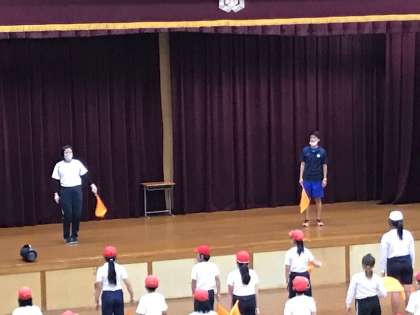 台風が近づきつつある今日,午前中から各学年が体育館でスポーツフェスタに向けての練習に励んでいます!