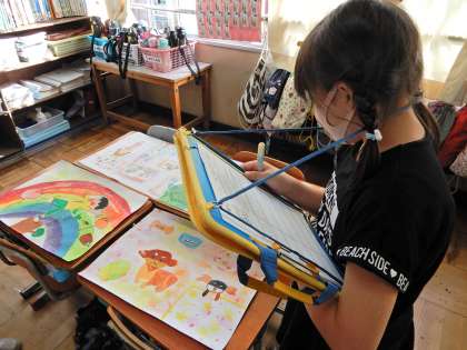 今日の図工では,お話の絵の鑑賞をしました。
