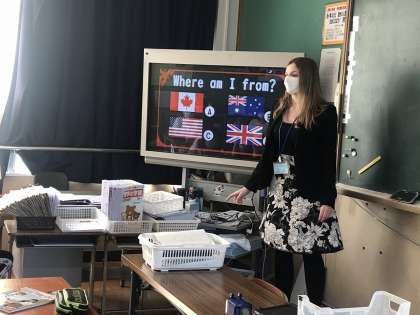 自己紹介を聞き,グリーン先生についての質問をしました。