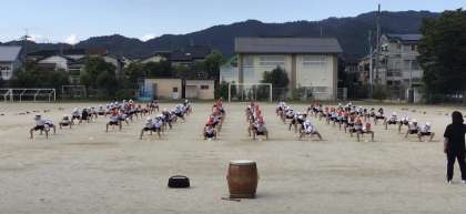今日は初めて,屋外で「南中ソーラン」の練習をしました。