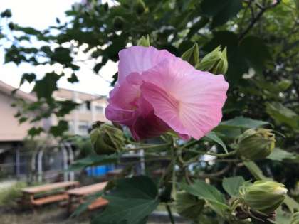 今朝の写真は,ビオトープ周辺の花々です。目立たない場所ですが,金木犀や白・ピンク色の花が辺りを明るくしています。