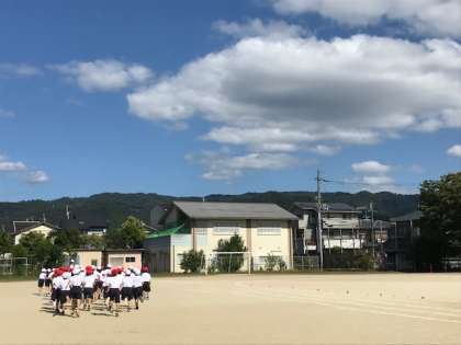 『スポーツフェスタに向けて』(秋晴れの下,気持ち良く走る1年生!)