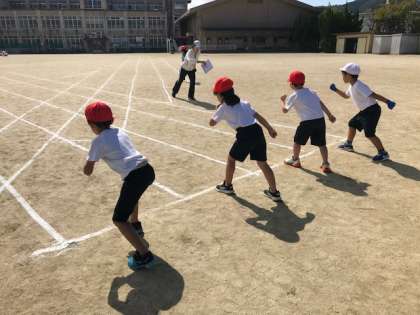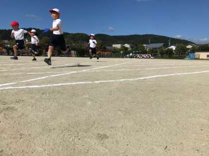 「位置について!ヨ〜イ・ドン!」の合図で,小さな体を精一杯動かして懸命にゴールを駆け抜けていました!