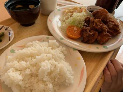 昼食は,「とんかつ定食」「唐揚げ定食」「うどん定食」の中からチョイスしています。