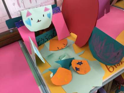 図工の学習で,班で作りたい世界を話し合い,作品を作りました。