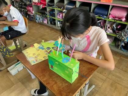 箱の色を工夫したり,GIGA端末でアイディアを探したり…