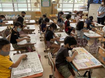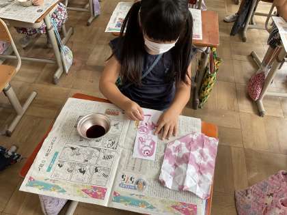 一生懸命育てたあさがおから,染めだしをしたり,しおりを作ったりして作品を作ることができ,子どもたちは大変喜んでいました。