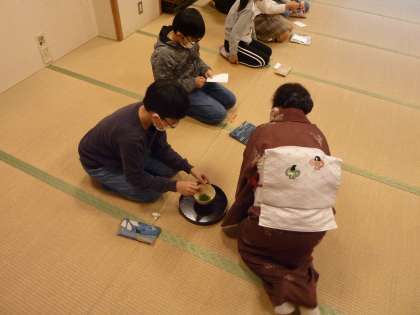 茶道クラブはお茶の先生に来ていただき,作法を習いつつ,お茶菓子をいただきました。