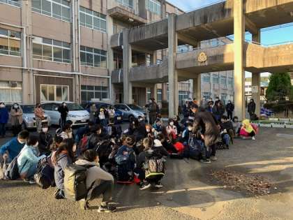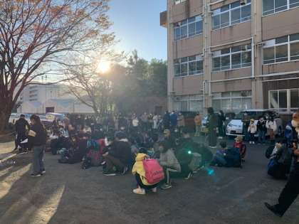 今シーズン一番の冷え込みとなりましたが,大きな荷物を抱えて早い時間帯から次々と登校してきました。