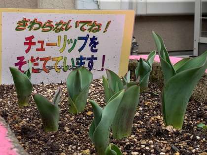 3月に入ってから暖かな天気に恵まれ,1年生を迎えるチューリップも順調に育ってくれています!