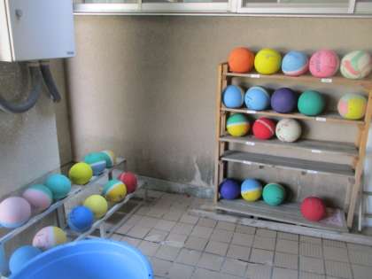 普段,何気なく使用しているボールですが,中間休みや昼休みの後,用務員さんが一球一球,消毒をしています。