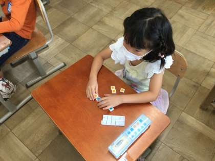 声に出しながらブロックを動かすのは,とても難しいですが,上手に言えるようになっています。