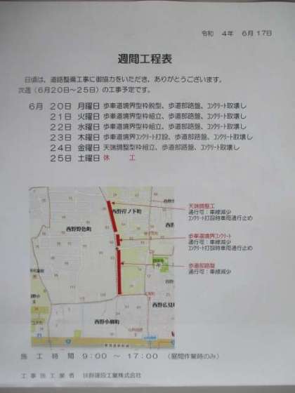来週,6月20日(月)からの工程表を添付いたしましたので,