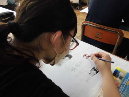 子どもたちは思い出を振り返って,記憶に残っている場面を絵に表しています。これまで学習した様々な技法を駆使して,絵を完成させます。どんな作品に仕上がるのか楽しみです。