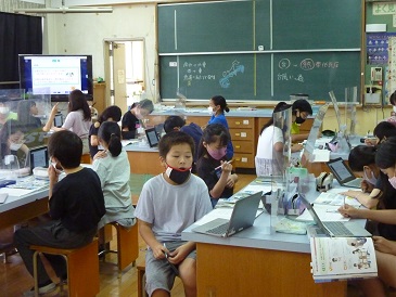 5年生の理科はタブレットを用いての授業でした。みんな上手に使いこなしていました。