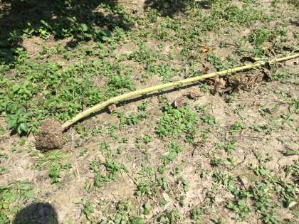 1学期に理科の学習で育てたひまわりが、とても大きく成長して倒れてしまっていました。そこで管理用務員の出口さんにも手伝って頂きながら土を掘り、今までよりも深く植え替えて支柱を立てました。
