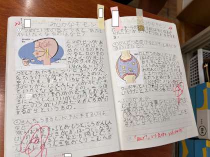 子どもたち,互いのノートを見て,「マネしたい!!」や「○○さんのノート,前より進化している!!」など良いところ伝え合っていました。