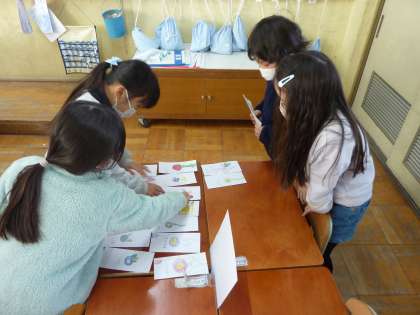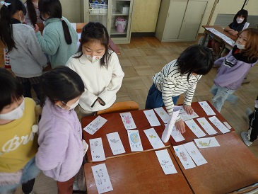 今日は1の2では、おみせやさんごっこ本番でした。上手にお店番やお客さんを演じて、ものの名前のやりとりを行えました。