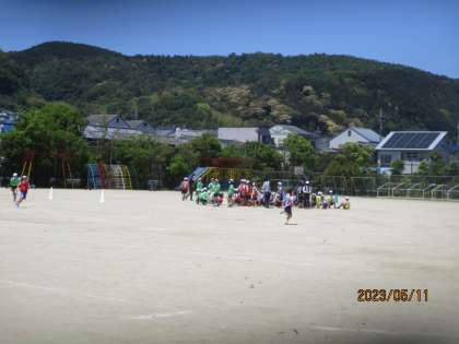 体育科でリレーの学習をしている学年がありました。走るスピードだけではなく、バトンパスのタイミング・声のかけ合いが大切です。