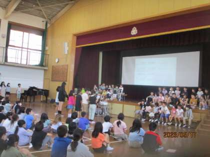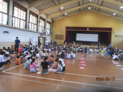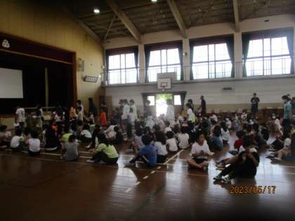 1年生をむかえる会を3時間目に行いました。6年生と共に入場をした後、たてわり班での活動も行いました。