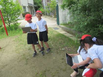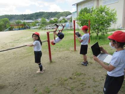 体育「てつぼうあそび」で、GIGA端末を使って学習しました。