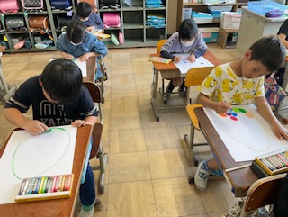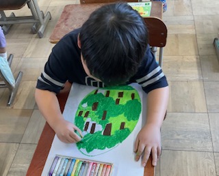 図工の授業で、『ふしぎなたまご』を描きました。