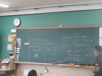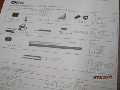 家庭科の学習で、裁縫セットにはどのようなもんがあるのかや使い方の注意点を確認している学年がありました。