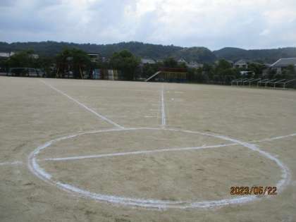 明日の新体力テストに向けて、前日準備を行いました。明日、体育服や水筒等の準備でお世話になります。よろしくお願いいたします。画像はソフトボール投げの場です。