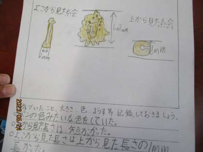 理科の学習に取り組んでいるクラスがありました。観察カードに、上からの視点、横からの視点で、丁寧に記録しようとしています。