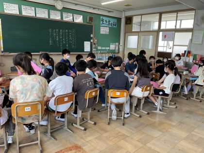 国語科の『笑うから楽しい』の学習では,「心の動き→体の動き」・「体の動き→心の動き」どちらが筆者が主張したいことなのかについて考えました。事例を根拠に子どもたちは,『体の動き→心の動き』の方が筆者の主張だとまとめていました。