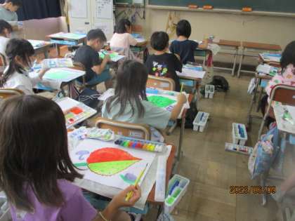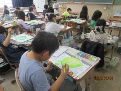 図画工作科の様子です。丁寧に色を重ねています。