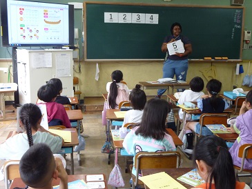 今日はキーン先生に来ていただき、数字の学習をしました。1〜20までの数字を学び、How many apples? I have 2 apples!などと受け答えの練習をしました。
