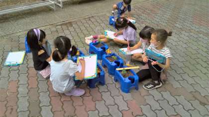 葉のにおいを嗅いだ子たちは、「もうミニトマトのにおいがするよ。」「早く食べたいな。」という声が多かったです。