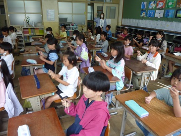 今日は栄養教諭の北村先生にお箸の持ち方やマナーを教えていただきました。これからもお箸を上手に扱える3年生になってほしいです。