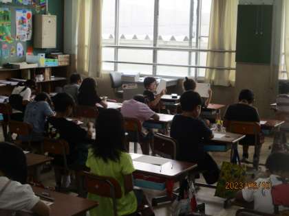朝の会に取り組む様子、漢字小テストに取り組む様子がみられました。
