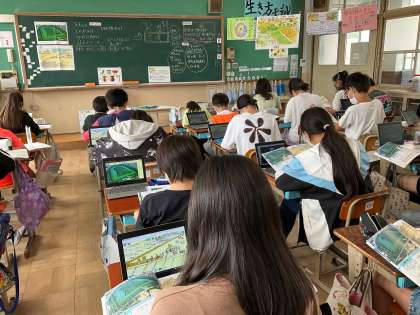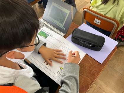 大仙古墳の大きさを西野小学校と比較したり,『どうして大きな古墳をつくったのか』について考えたりしました。