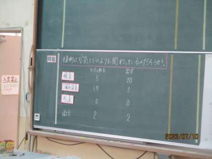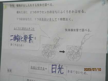 6年生の理科では、植物と空気の関係についての学習をしていました。