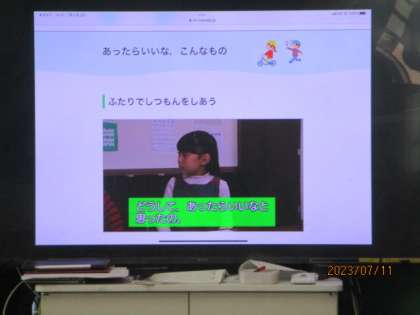 2年生は、教材文「あったらいいなこんなもの」をもとに質問をし合って、詳しく考えるときのポイントを学ぼうとしていました。
