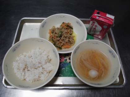 にんにく・しょうがとともに、豚ひき肉やたまねぎ・ピーマン・にんじんの野菜をいため、さとう・ウスターソース・しょうゆ・カレー粉で味をつけた洋風のそぼろごはんです。