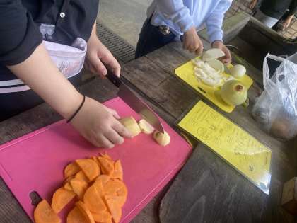 野外炊事の様子です。