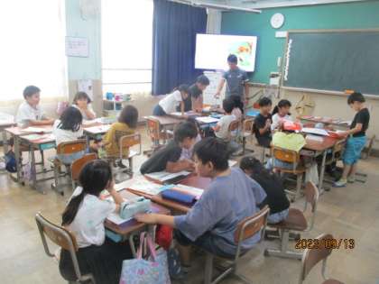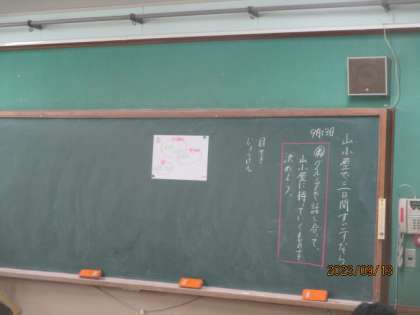3年生の教室では、山小屋で3日間すごすなら……という仮定思考の学習をしていました。子どもたちは「山小屋に持っていくもの」についてグループで話し合っていました。